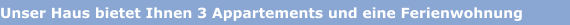 Die Appartments bestehen aus einem Wohn-Schlafraum mit Boxspringbetten. Eines der drei Appartments besitzt einen Blick zum Innenhof auf den liebevoll gepflegten Garten.